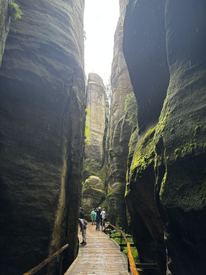 Unsere Expeditionsreise durch die Adersbacher Felsenstadt war ein unvergessliches Erlebnis. Jeder Schritt auf den verschlungenen Pfaden brachte uns tiefer in eine Welt, die sowohl majestätisch als auch geheimnisvoll ist. Die Felsen selbst schienen zu flüstern, erzählten von alten Zeiten und verborgenen Geheimnissen. Abseits der bekannten Pfade entdeckten wir versteckte Höhlen, in denen einst Einsiedler gelebt haben sollen, und kleine Wasserfälle, die wie magische Tore zu einer anderen Welt wirkten. Für jeden, der sich für Naturwunder und mystische Geschichten interessiert, ist die Adersbacher Felsenstadt ein absolutes Muss. Diese Reise in eine Welt voller Mythen, umgeben von der beeindruckenden Schönheit der Natur, bleibt uns sicherlich lange in Erinnerung. Ob man an die alten Legenden glaubt oder nicht, die Magie dieses Ortes ist unbestreitbar und lädt dazu ein, sich auf eine Reise der Fantasie und Entdeckung zu begeben.